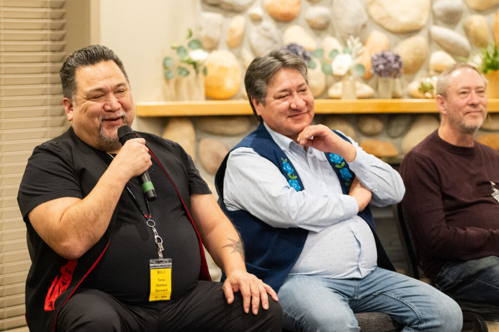 Pictured above (from left-right), Terry Dorward – West Coast Conservation Director, IISAAK OLAM Foundation; Steven Nitah – Managing Director First 30×30 Canada & Nature For Justice; Eric Angel – General Manager, Salmon Parks Stewardship Society. Credits: Jamie Frith